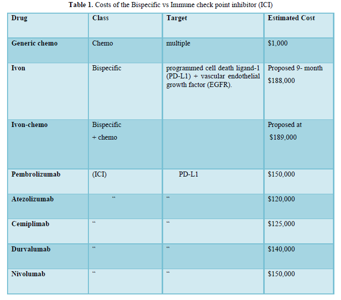 - Guirgis, HM. Cost Comparison of The Bispecific Ivonescimab, Immune Check Point Inhibitors and Target Therapy in advanced/metastatic Lung Cancer. J Cancer Sci Treatment, 7(1): 228-231.