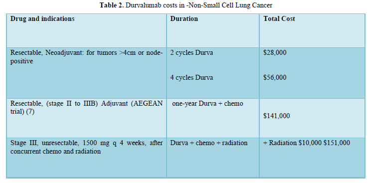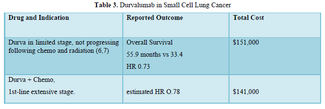 Durva role and costs in non-small and small cell in lung cancer are shown in Table 2,3.