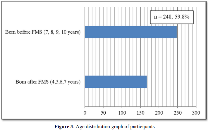 The participants were divided into two groups: those who were born before and after December 13th, 2010, which is the date of starting FMM (Figure 3).