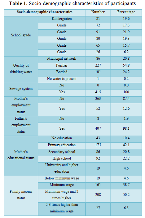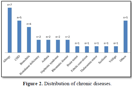 The study included 415 participants between the ages of 4-10. Eleven participants were excluded from the study due to incomplete data. The mean age of the participants was 7.07±1.74 years. The distribution of the participants' chronic diseases is presented in Figure 2.