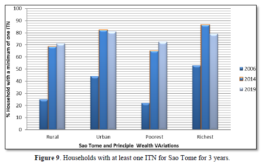 Gambia, Ghana, Mauitana, Sierra Leone and Togo poorest/rural areas had higher ITN compared to urban/ rich areas. The reverse was the case with Central African Republic, and Sao Tome and Principe.