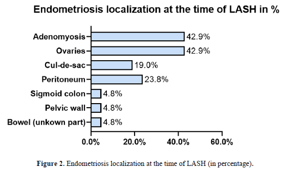 The population characteristic of the 21 women recruited for this study are summarized in (Table 1). At the time of LASH, the mean age was 39.2 years (range 33-48). The primary indication for LASH was endometriosis in 76.2% (n=16) of cases.