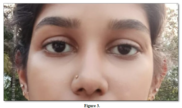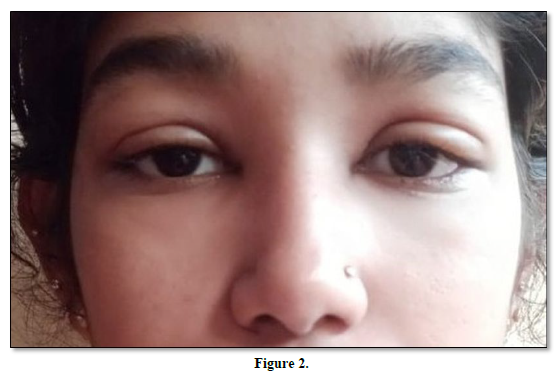 The patient was managed with intravenous corticosteroids and supportive measures, including topical eye drops. Her symptoms gradually improved, with resolution of fever and periorbital swelling (Figures 2 & 3). She was discharged in a stable condition with outpatient follow-up.