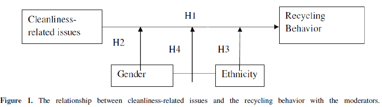 The objectives of the study are: (1) to determine the relationship between perceived cleanliness-related issues and the recycling behavior; (2) to compare the differences among gender groups (males and females) and among ethnicities (Malays, Chinese and Indians) on the recycling behavior; and (3) to predict the impact of the interaction effect of gender and ethnicity on the relationship between perceived cleanliness-related issues and the recycling practice.