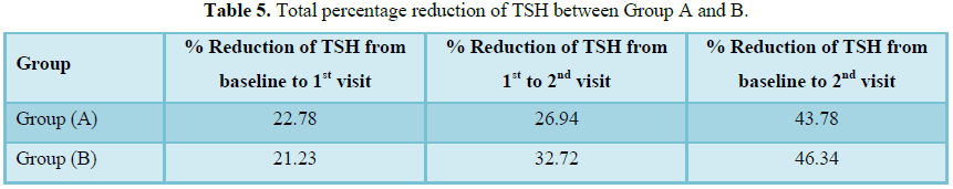 patients, 30 Group A (50%) and 30 Group B (50%).the percentage reduction of TSH