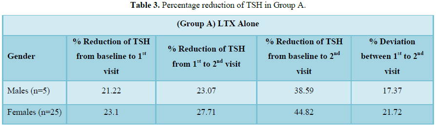 In males, the percentage reduction of TSH was found to be baseline to 1st visit