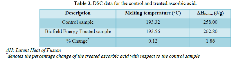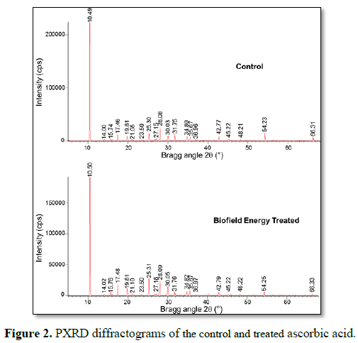 Trivedi and termed as Biofield Energy Treated ascorbic acid. The PXRD relative
