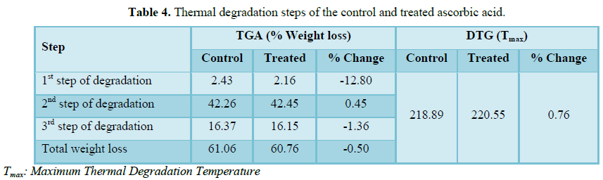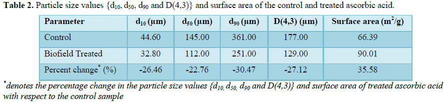 size of the treated ascorbic acid was significantly increased by 13.56%