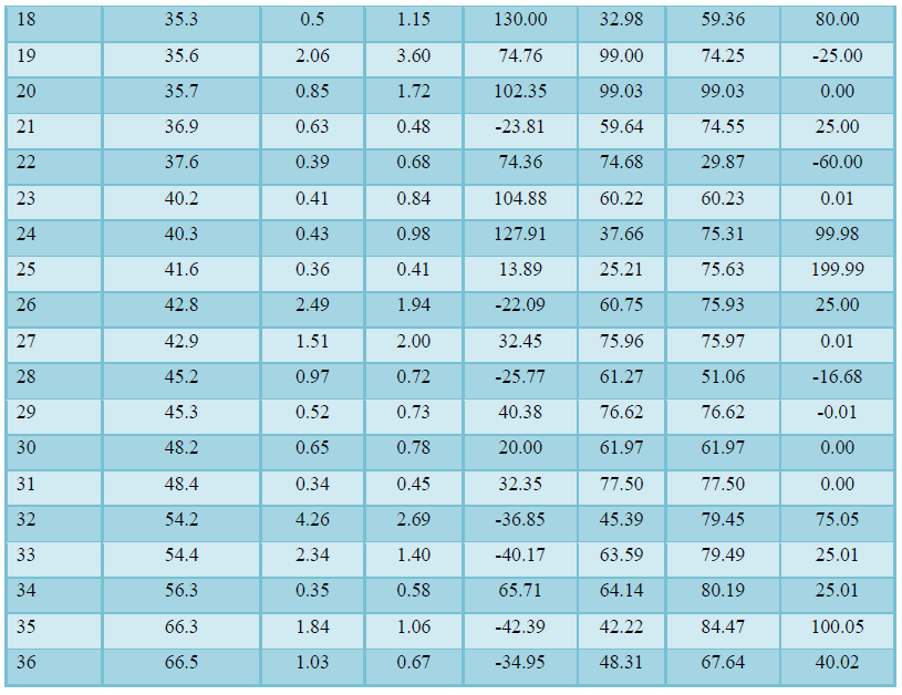 significantly altered ranging from -42.39% to 202.77% and -60.00% to 199.99%,