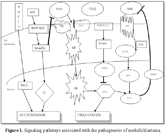 various signaling pathways associated with the pathogenesis of medulloblastoma.