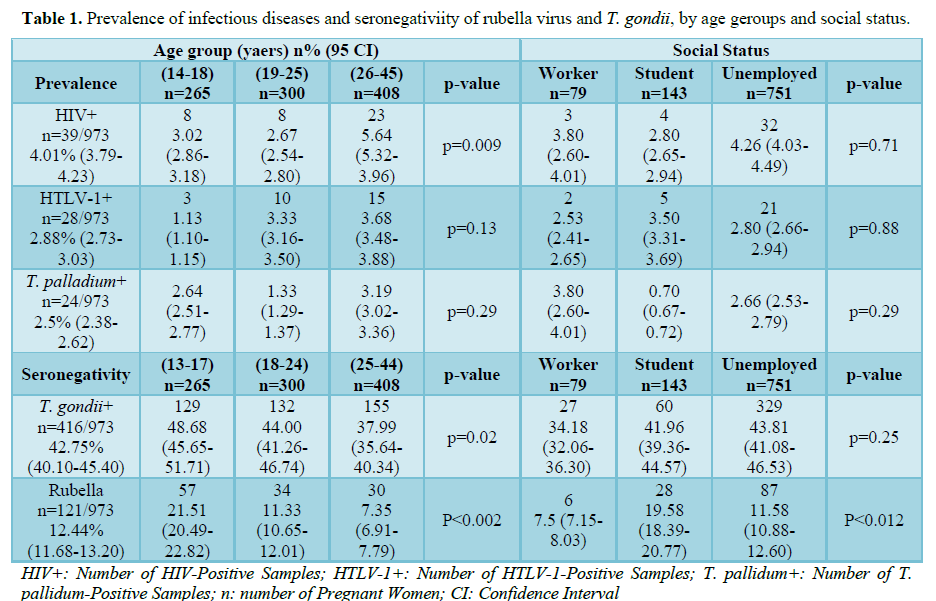 M, et al. (2012) Seroprevalence of toxoplamosis and rubella in pregnant women
