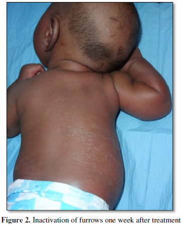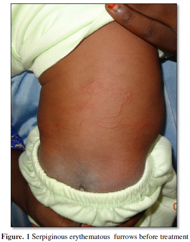 after initiation of treatment, inactivation of serpiginous erythematous furrows