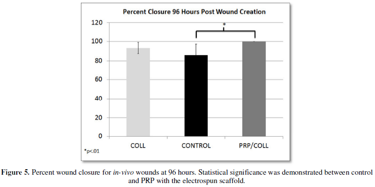 At 96 hours post wound creation the combination therapy, PRP with electrospun