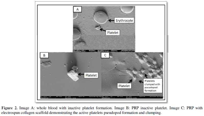 electrospun collagen scaffold activation of the platelets occurs releasing the