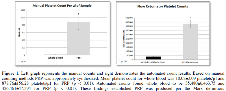 whole blood to be 35,480 ± 6,463.75 and 426,461 ± 47,394 for PRP (p < 0.01).