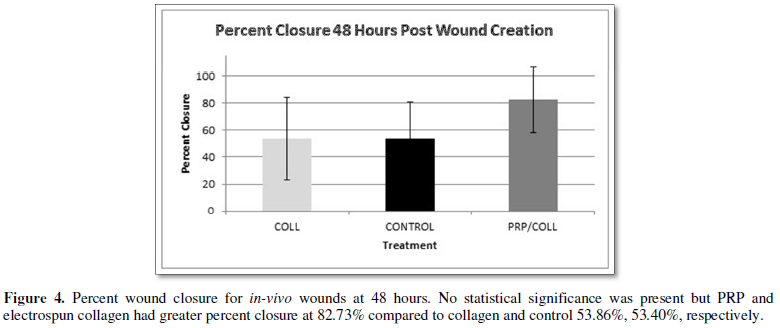 the control had a percent closure of 96.48 ± 2.724% (p<0.02). The standalone collagen treatment had a percent closure