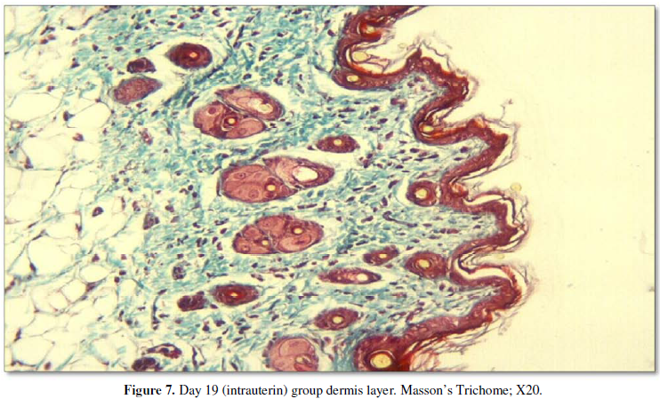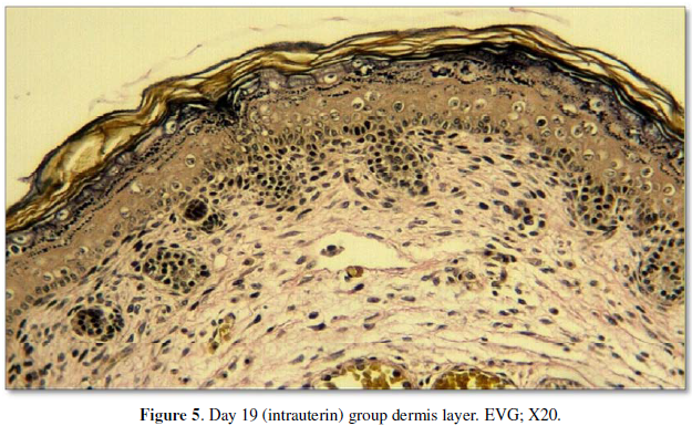 than the intrauterine group and mostly condensed in the middle of the dermis.