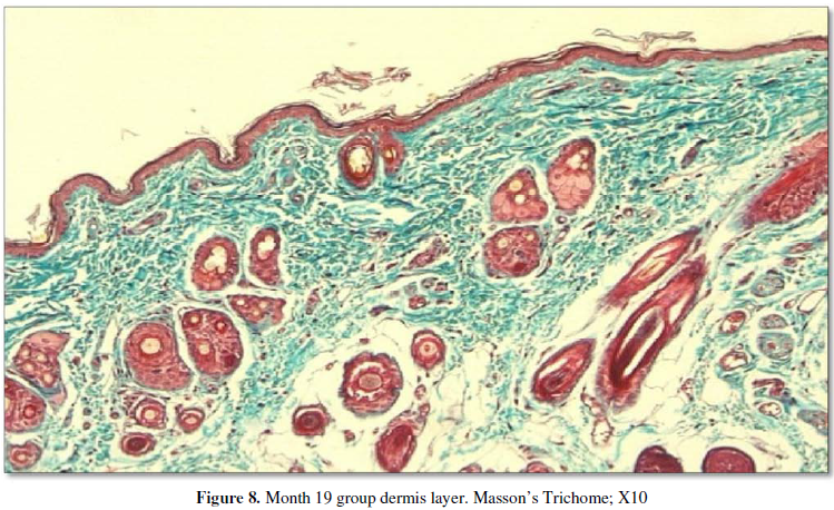 among all the groups, the thickest dermis was observed in this group (Figure 5, 6). All measurement results