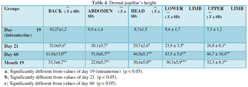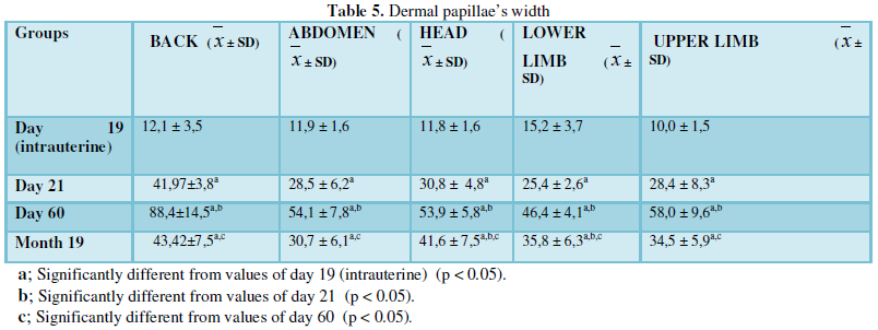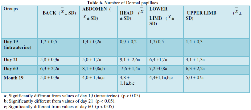 prenatal group, the dermal papillae, which are projections of the dermis toward