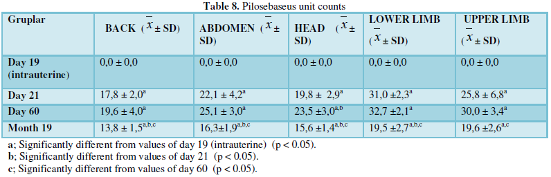and pilosebaceous units counts are shown in the Table 8 and Graphic