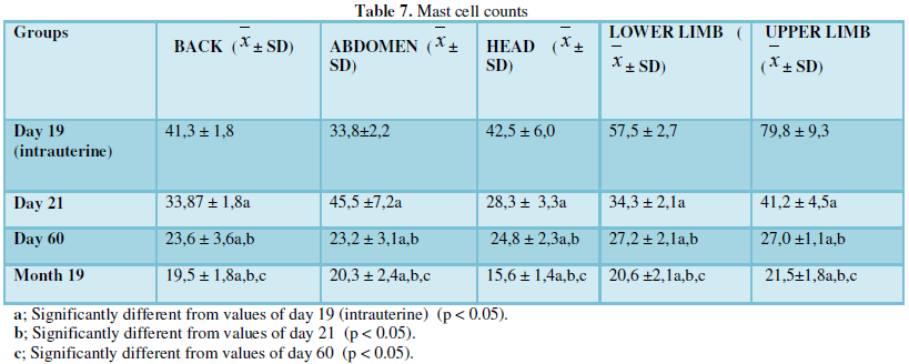 4-6 Mast cell counts are shown in the Table 7 and Graphic 7,
