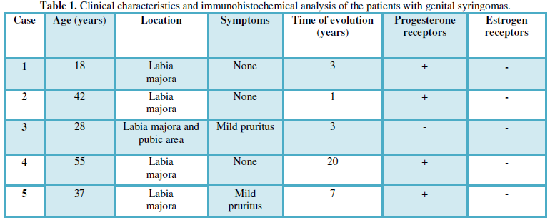 vulvar syringomas that were submitted to immunohistochemistry analysis. The age