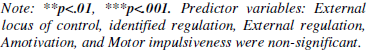 external regulation, amotivation, distractiveness, and motor impulsiveness than