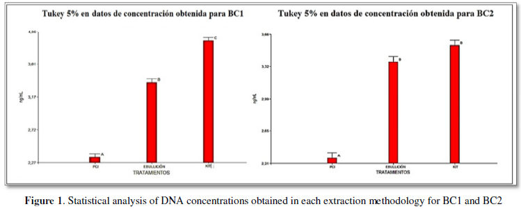 difference (p˂0.001); The ROCHE kit methodology presented the best DNA quality