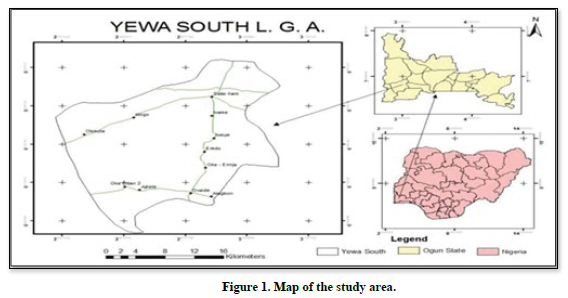 Ilaro, located in Ogun State, Nigeria, lies within the Yewa (formerly Egbado) cultural region, historically inhabited by the Yewa people, who trace their ancestry to Ile-Ife, regarded as the ancestral homeland of the Yoruba ethnic group. Its development into a prominent settlement was largely influenced by its strategic position along key trade routes that connected various regions of Yorubaland and the neighboring Dahomey Kingdom (present-day Benin Republic). Ilaro experiences a bimodal climate with two distinct seasons: Rainy season extending from March to November, characterized by heavy and consistent rainfall and dry season: Lasting from December to February, marked by minimal precipitation. The region receives an average annual rainfall of 1,700 to 2,000 mm, supporting lush vegetation, with a consistent mean annual temperature of 26°C, indicative of a tropical monsoon climate. The area's original vegetation is tropical rainforest, known for its emergent trees rising above the canopy, multiple canopy layers providing dense cover and lianas and epiphytes, adding to the biodiversity. Prominent tree species include Milicia excelsa (Iroko), Afzelia bipindensis (African mahogany), Brachystegia nigerica, Lovoa trichilioides (African walnut), Terminalia ivorensis and Terminalia superba (Black and White Afara), Triplochiton scleroxylon (Obeche). Due to agricultural expansion and human activities, the original forest cover has significantly declined. The landscape is now dominated by secondary regrowth forests, thickets, and grasslands, with primary forest remnants largely confined to areas less disturbed by farming. This transformation highlights the ongoing impact of human activity on Ilaro's ecosystem, necessitating conservation efforts to preserve its remaining biodiversity (Figure 1).