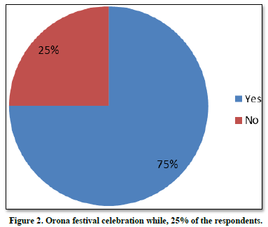 Figure 2 below shows 75% of the respondents said Yes, they have attended Orona festival celebration while, 25% of the respondents said No.