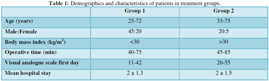 Results: LC was followed by umbilical hernia repair using primary suture in 65 patients (Group 1), progrip mesh repair in 25 patients (Group 2). Progrip mesh repair was performed in Mean body mass indexes (BMI) greater than 30.0 kg/m2 (Group 2).