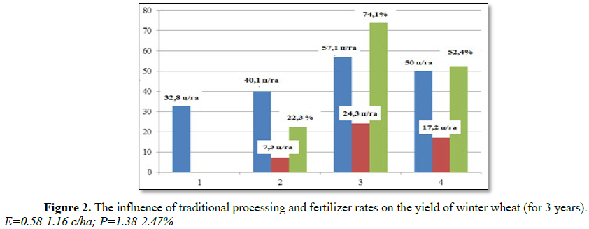 winter wheat grain in a fertilizer-free version amounted to 32.8 c/ha (Figure 2).
