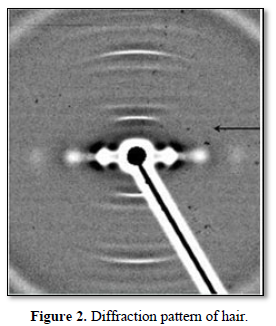 The molecular structures of skin and hair are shown in Figures 1 and 2. The additional molecules added by cancers do not change these low angle X-ray diffraction patterns of skin or hair but simply stamp their own exclusive ring or rings onto the skin and/or hair patterns.