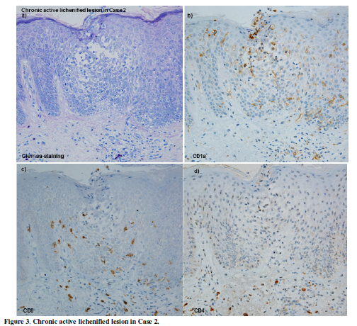 chronic lichenified lesions of two patients (Cases 1 and 2), and atopy patch