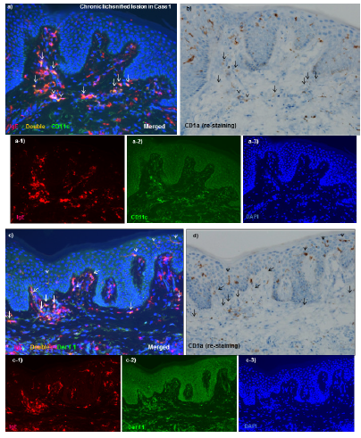 antibodies (pAbs), and anti-CD1a mAbs and anti-Derf1 pAbs. Immunohistochemical re-staining with