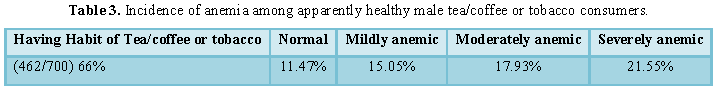 anemia was about 60% in low and moderate income group. Amid 462 tea/coffee
