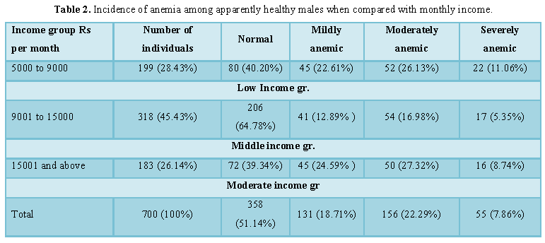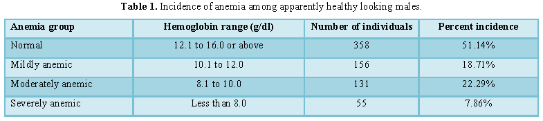 the incidence of anemia among 700 apparently healthy looking male industry