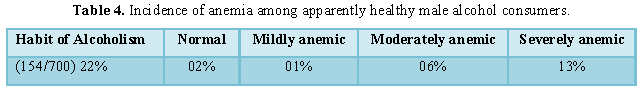 anemic, 17.93% were moderately anemic. In a group of 154 alcohol consumers 13%