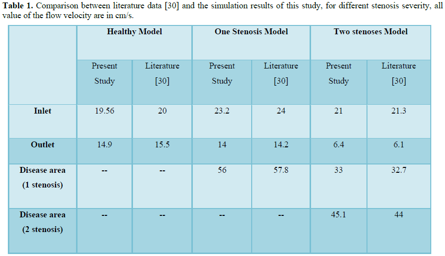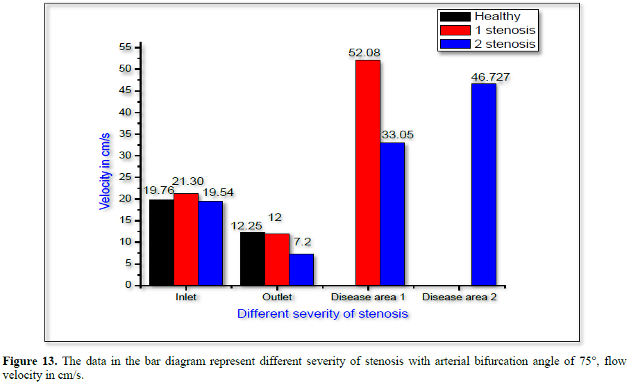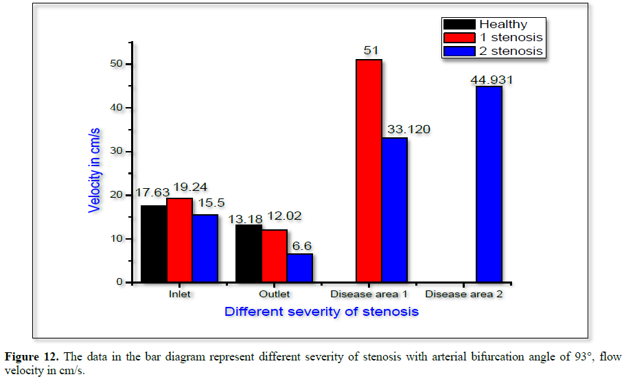 Severity of stenosis differs for different angles in the diseased (stenosed) models. So, the computational hemodynamics (CHD) parameters provide information about the condition of stenosis in the idealized models and can give a clearer insight about the blood circulation in the human body.