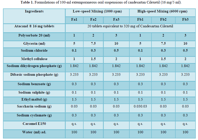 evaluate an appropriate extemporaneous oral suspension of candesartan