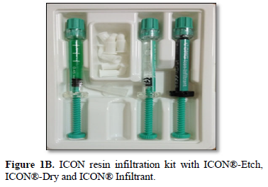 A new material for infiltration is an alternative therapeutic approach for masking these hyposcalcified areas. The goal of this treatment is to occlude the micro porosities within the lesion body by infiltration with low-viscosity light-curing resins that have been optimized for rapid penetration into the porous enamel [2]. ICON is an innovative product for the micro-invasive treatment of dental lesions on smooth surfaces.