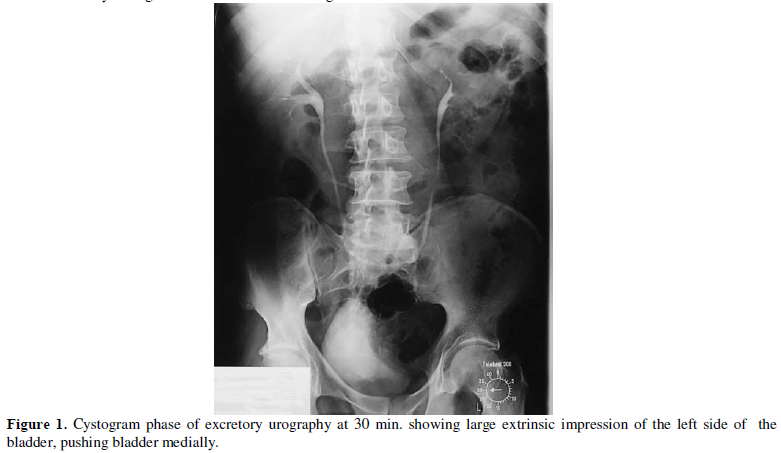 phase of excretory urography showed large extrinsic impression of the left side