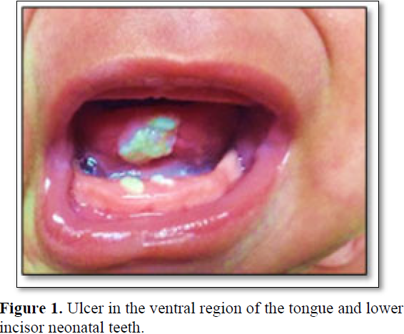 The etiology of the dental eruption in the natal or neonatal period is unknown, however, Landa et al. consider the probable existence of a genetic etiology. One of the most frequent complications is Riga-Fede ulcer, which consists of ulceration of the ventral surface of the tongue 60% of the time. It is caused by repeated trauma to the oral mucosa, secondary to protrusion movements and continuous retraction on the teeth. It generally occurs during lactation and by the instinctive process of tongue protrusion [2,8].