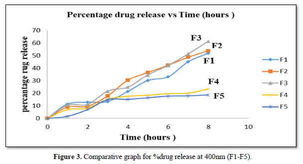 It can be noted that drug release pattern observed was similar to that reported at 400nm in (Figure 4).
