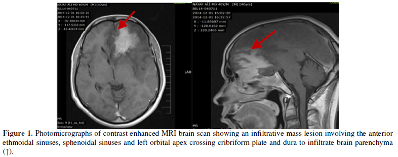 differential diagnosis was given as Sinonasal adenocarcinoma with brain