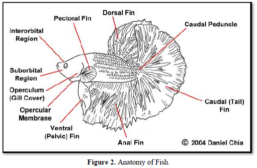 Adult males can grow up to a length of 7cm while females tend to be slightly smaller, often reaching a maximum of 5cm. Adult males tend to be domesticated and show colorful pigmentation of long and ostentatious fins. In contrast, females show smaller, shorter, and less luminously colored fins. Betta Splenders survive best in waters with a neutral pH (6.8-7.4) and tropical water temperatures (75-86°F). Although, Betta Splenders can survive in oxygen-diminished water by breathing from the surface, they suffer less stress with clean water and opulent oxygen. These conditions allow them, by opening their bony opercula, to absorb oxygen into their mouth and across their gills (Figure 2) [3].