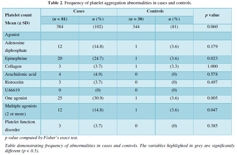 In our study, a significantly higher proportion of women with endometriosis had abnormal platelet aggregation response to one and multiple agonists compared to controls. Furthermore, the women with platelet aggregation defects were more symptomatic with heavy menstrual bleeding (HMB) and increased PBAC score (p = 0.024). A high frequency of HMB has been reported in women with platelet function disorders and VWD [14-19]. The increased frequency of abnormal platelet aggregation and low VWF: RCo seen in women with advanced disease indicate that primary hemostasis defects are associated with endometriosis.