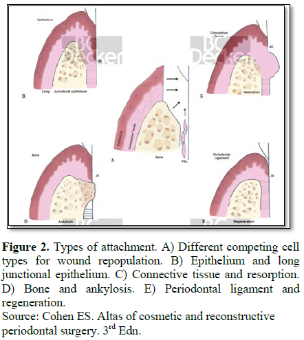 In spite of advances in the tissue engineering concept, we are only able to regenerate cellular cementum and not acellular cementum. Further, no single technique to regenerate cementum is successful and a combination of techniques is required. Reformation of acellular cementum during adult life becomes illusionary since the epithelial cells responsible for the formation of the hyaline layer are no longer present in the adult periodontium. In future by designing advanced technology to deliver novel genes and growth factors expressed by cementoblasts but absent in wound environment will assist in providing optimal conditions required for more predictable technique for cementum regeneration. Further, the extent of regeneration necessary to influence long-term tooth prognosis has not been established [11] (Figure 2).