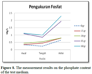 At the 50 g treatment known to occur the largest growth of root length, with a total average growth of 13.2 cm. While the longest root length growth is on the treatment of 0 g inorganic compounds with a total growth rate of 10.4 cm. This can happen because the elements of nitrate and phosphate in the test medium affect root growth in plants. Sitrabio [19] said that the function of phosphorus (P) element for plants is for root growth, flowering, ripening fruit/seed/grain. The P element also serves for the preparation of cell nuclei, fats, and proteins. In addition, P element also serves to stimulate cell plant defense and enlarge cell tissue.
