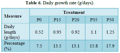 end of the experiment, 18.8 g BW with a daily growth rate was 17.9% of the